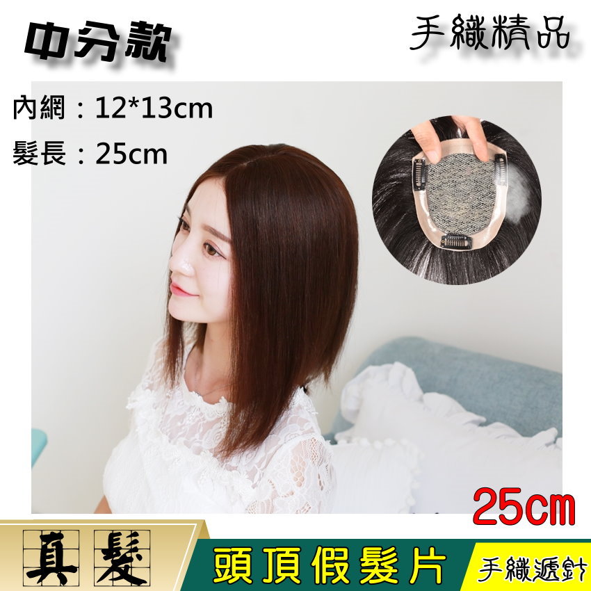 【頭頂假髮片】【真髮】【25cm】【121325】遞針中分補髮塊☆舒適、自然、快速穿戴 數量