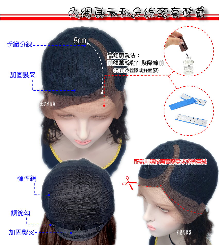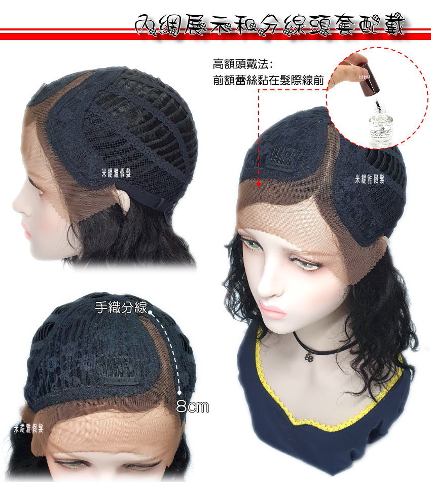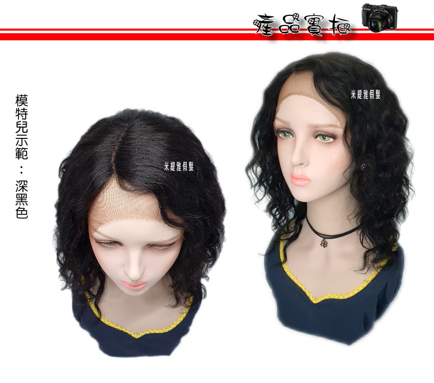 全頂式真髮☆前蕾絲 手織分線 兩用頭套 中捲波浪燙 露額頭 自然無痕☆短髮☆【1307】 數量