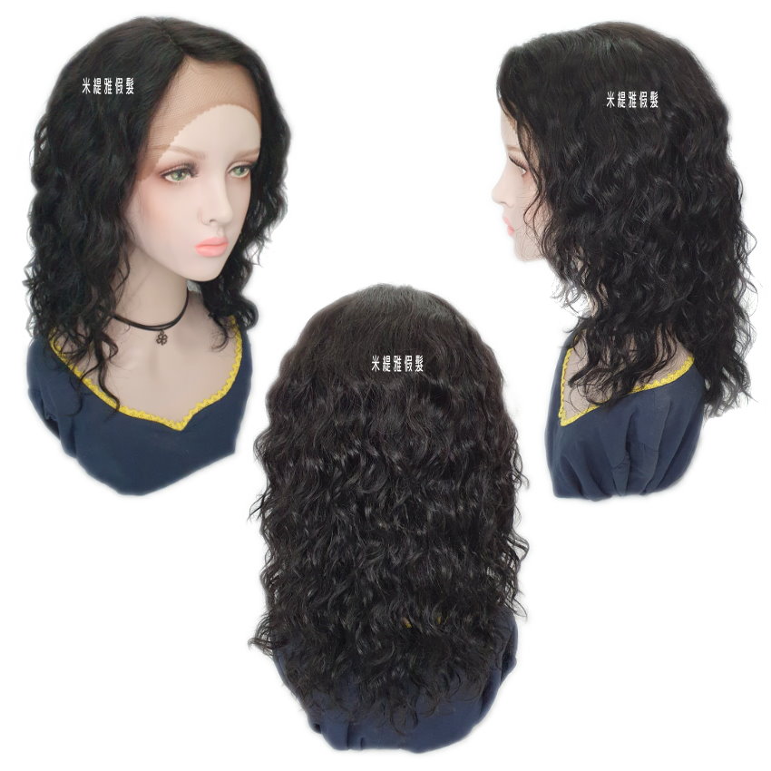 全頂式真髮☆前蕾絲 手織分線 兩用頭套 中捲波浪燙 露額頭 自然無痕☆短髮☆【1307】