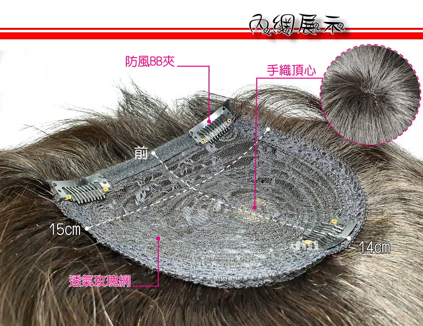 【頭頂假髮片】【真髮】【35cm】【1514-35】手織頂心 補髮塊