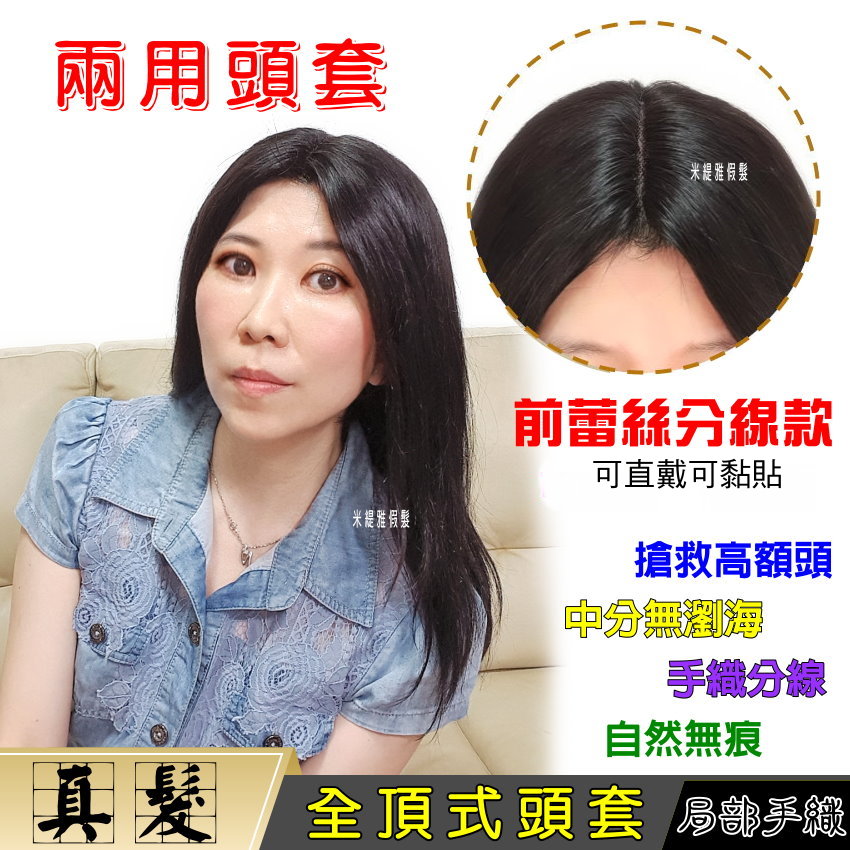 全頂式前蕾絲兩用頭套☆中分手織分線 露額頭 自然無痕☆真髮長直髮☆【1922B】 數量