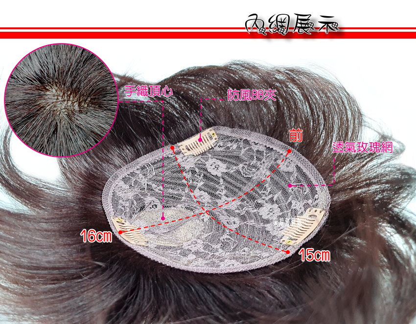 【頭頂假髮片】【真髮】【18cm】【502】大內網15*16♥補髮 增髮 遮白髮