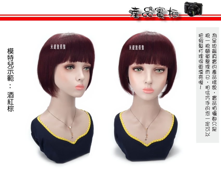 全頂式真髮☆齊瀏海 BOBO頭 修臉款 短直髮☆真髮☆【6123M】