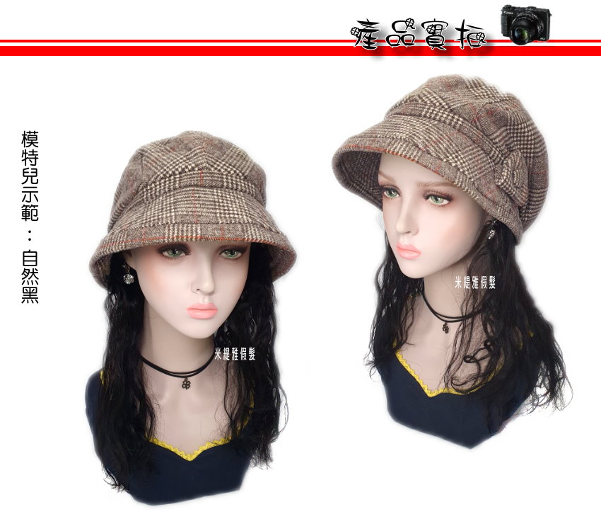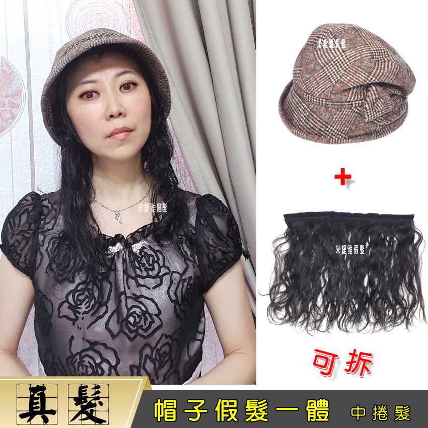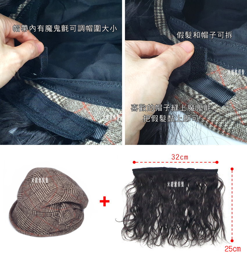 帶帽假髮 ☆【cap-Q25】【25cm】【真髮】帽子+假髮一體成型外出戶外保暖方便快速