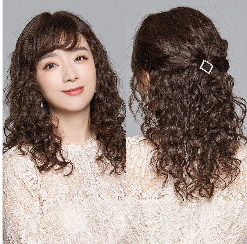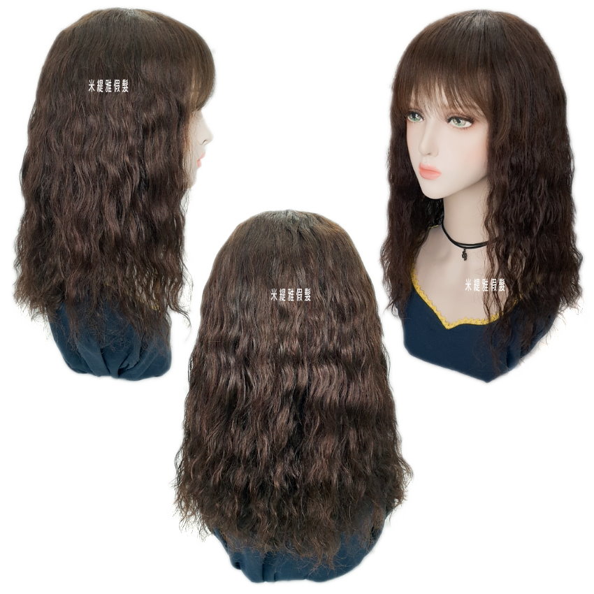 全頂式真髮☆碎瀏海 手織頂心 羊毛捲 小捲燙 氣質假髮 中長捲髮☆真髮☆【FA20】