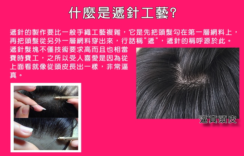 用卡子固定在自己的頭髮上,適合脫髮面積不大、頭髮稀少的人士,取戴方便快速
