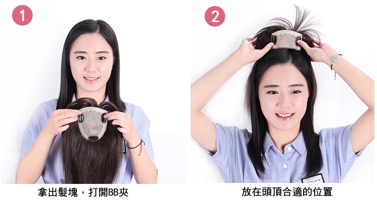 用卡子固定在自己的頭髮上,適合脫髮面積不大、頭髮稀少的人士,取戴方便快速