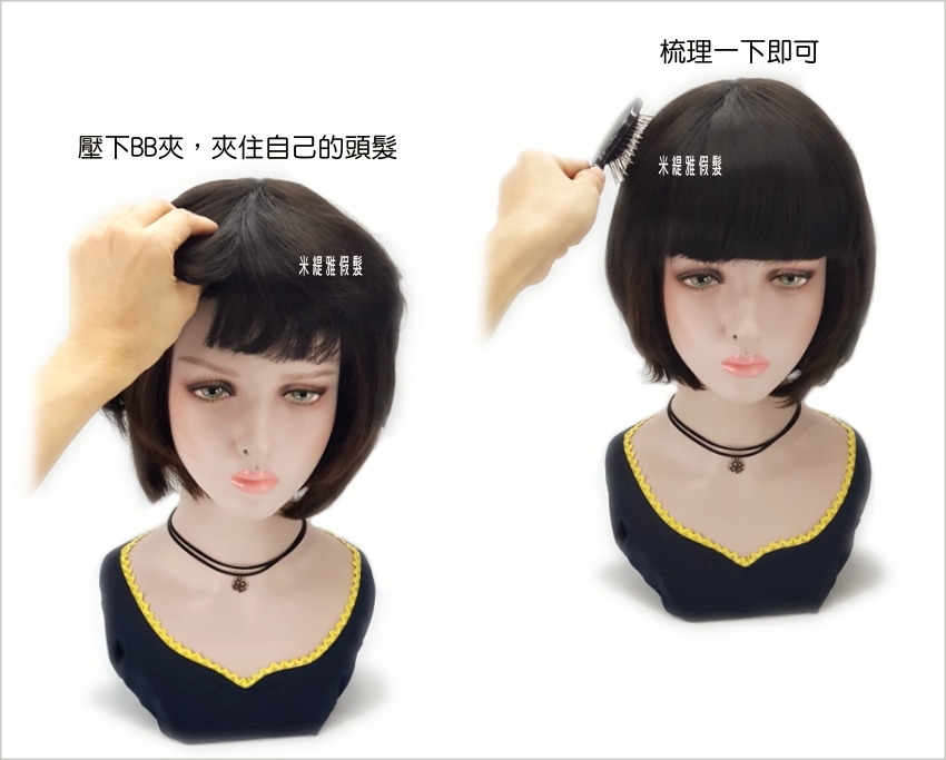 【頭頂假髮片】【高溫絲】【25cm】【HP13531】齊劉海BOBO修臉款 補髮塊 穿戴方便