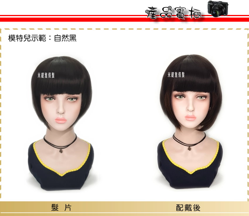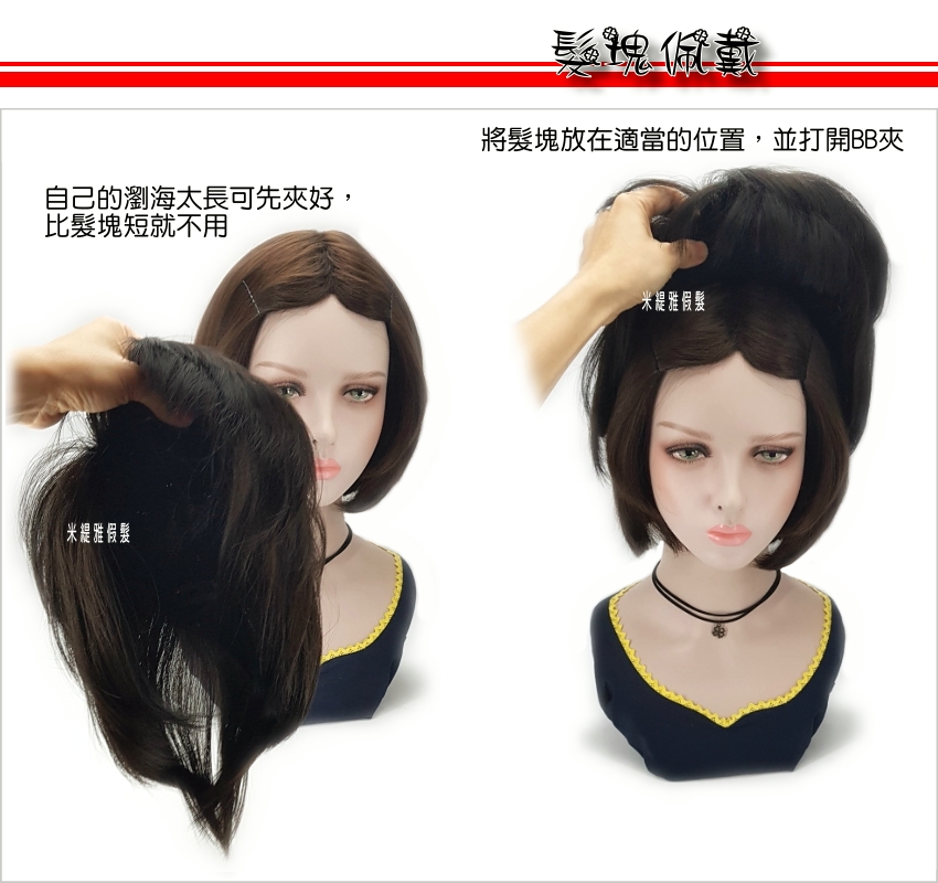 【頭頂假髮片】【高溫絲】【25cm】【HP13531】齊劉海BOBO修臉款 補髮塊 穿戴方便 數量