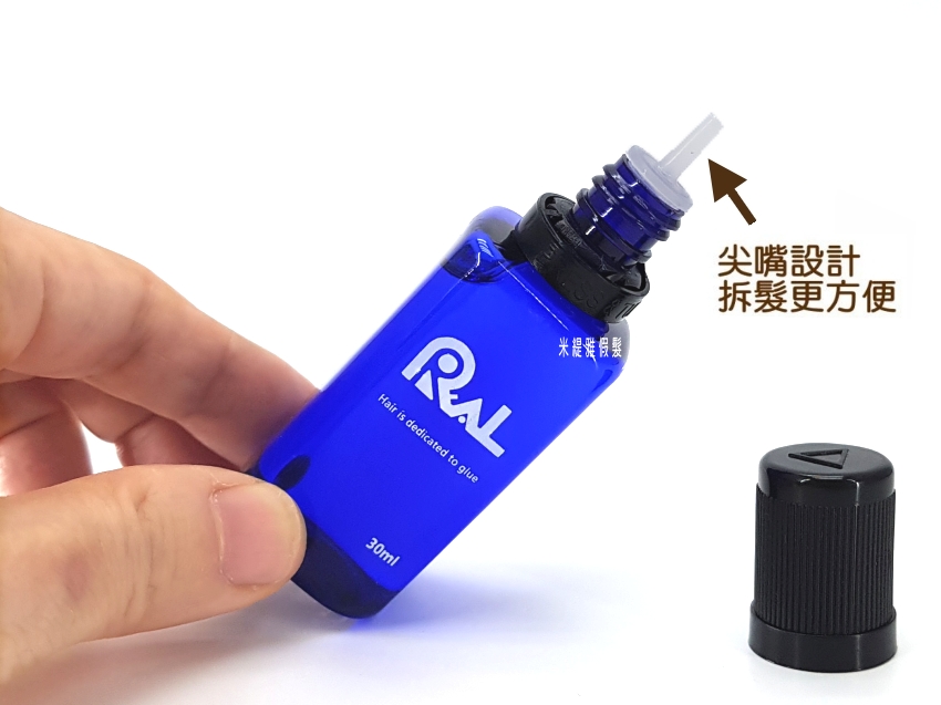 1.沿著膠和頭皮的接口縫滴幾滴上去,不要太多喔~