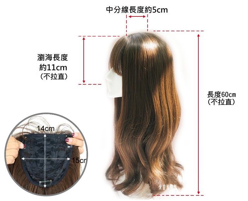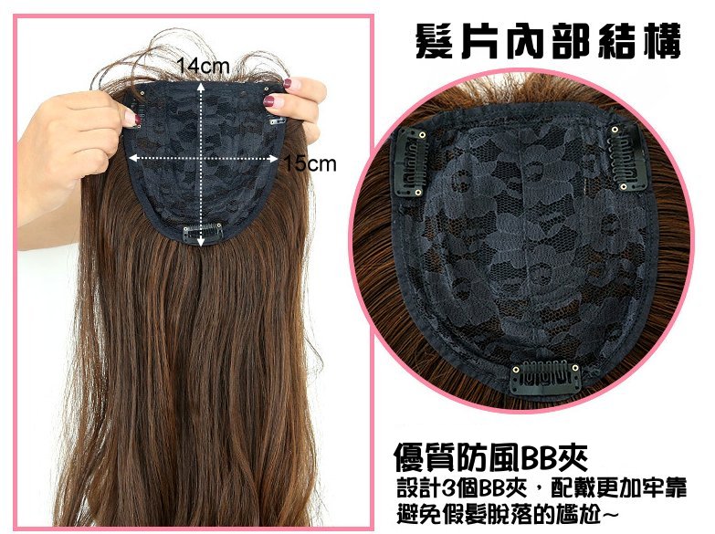 【頭頂假髮片】【高溫絲】【55cm】【TD03】大頭皮小中分空氣瀏海大波浪補髮塊 數量